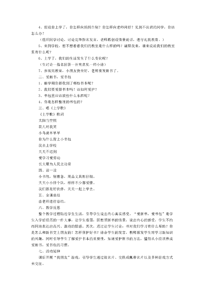 2021一年级上册 人教版小学道德与法治《1 开开心心上学去》教学设计2.doc