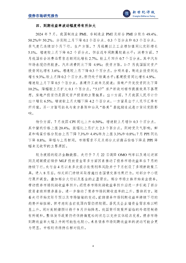 新世纪评级:债券市场到期收益率波动幅度将有所加大——2024年7月债券市场利率分析.pdf