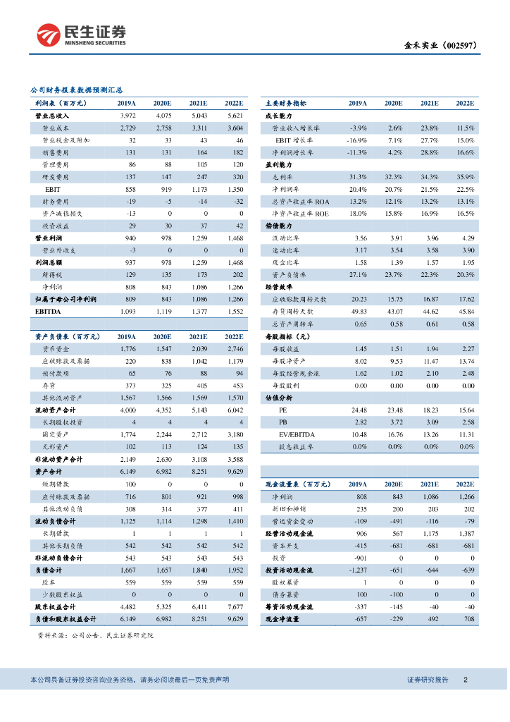 民生证券:金禾实业(002597)-2020年中报点评:业绩环比改善,食品添加剂有望持续发力.pdf