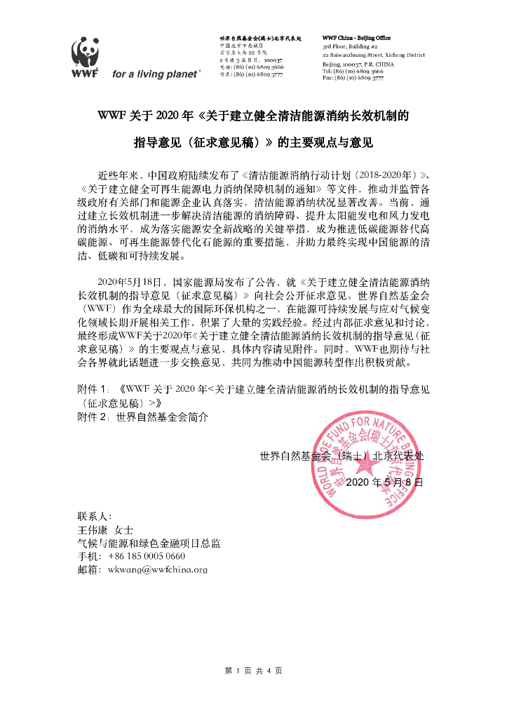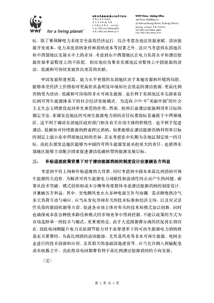 世界自然基金会:WWF关于2020年《关于建立健全清洁能源消纳长效机制的指导意见(征求意见稿)》的主要观点与意见.pdf