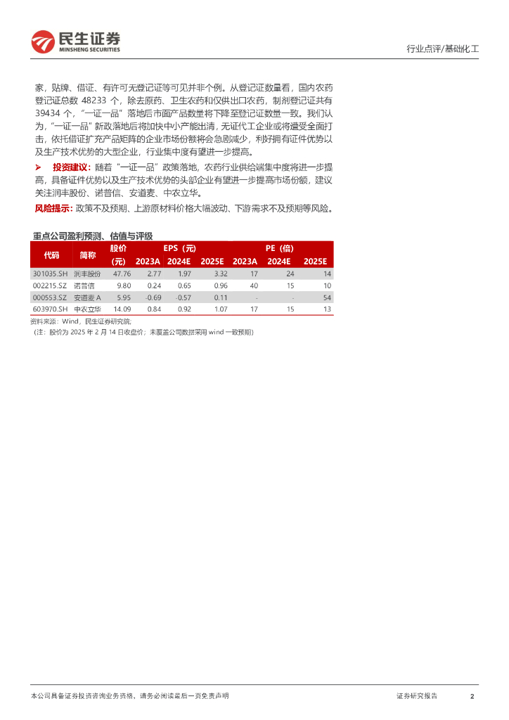 民生证券:农药行业点评报告:农药价格持续磨底,“一证一品”有望加速行业格局重塑.pdf