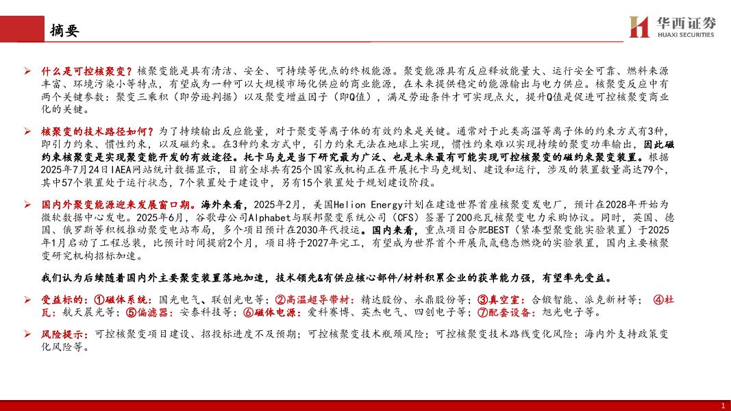 华西证券:可控核聚变行业:0-1产业落地可期.pdf