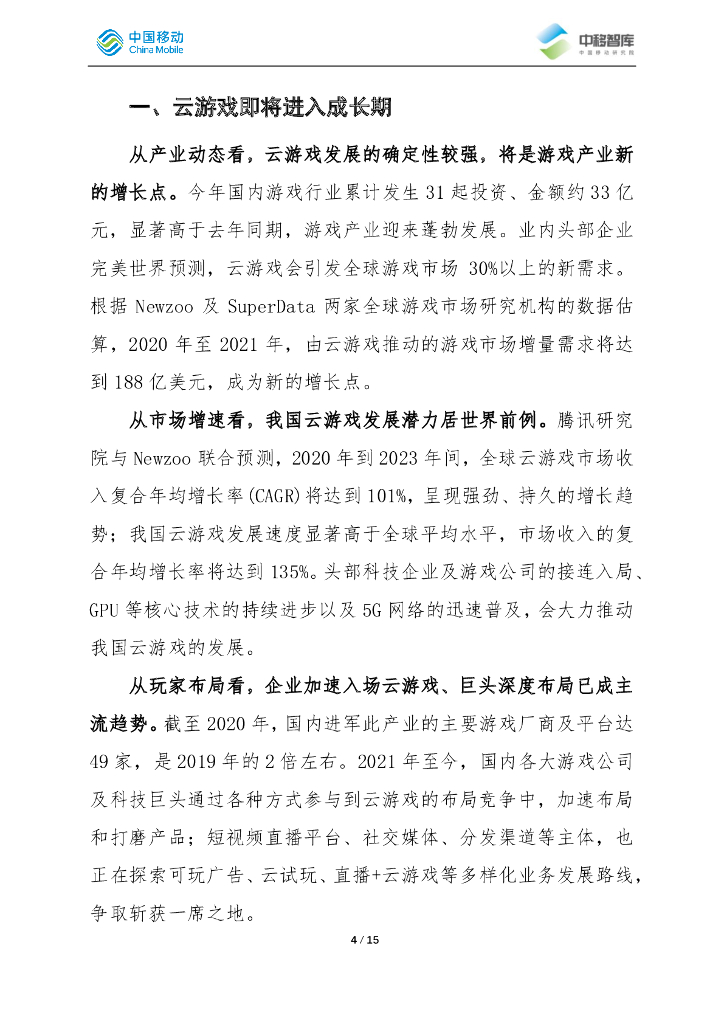 中国移动研究院:云游戏平台腾飞在即,当下已是合适的入场时间.pdf