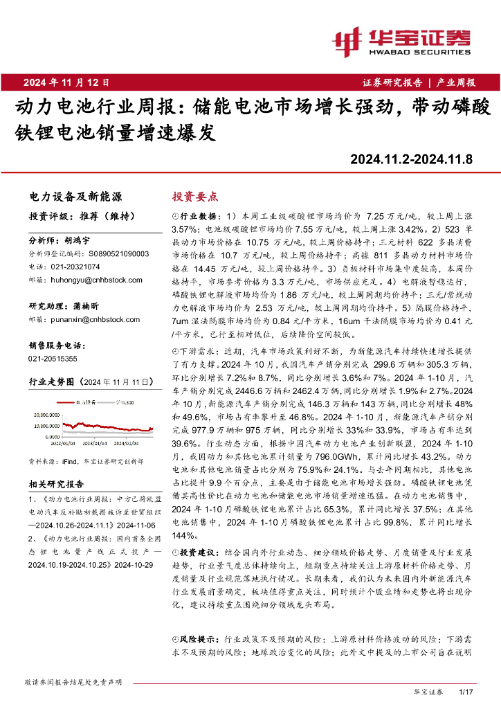 华宝证券:动力电池行业周报:储能电池市场增长强劲,带动磷酸铁锂电池销量增速爆发.pdf
