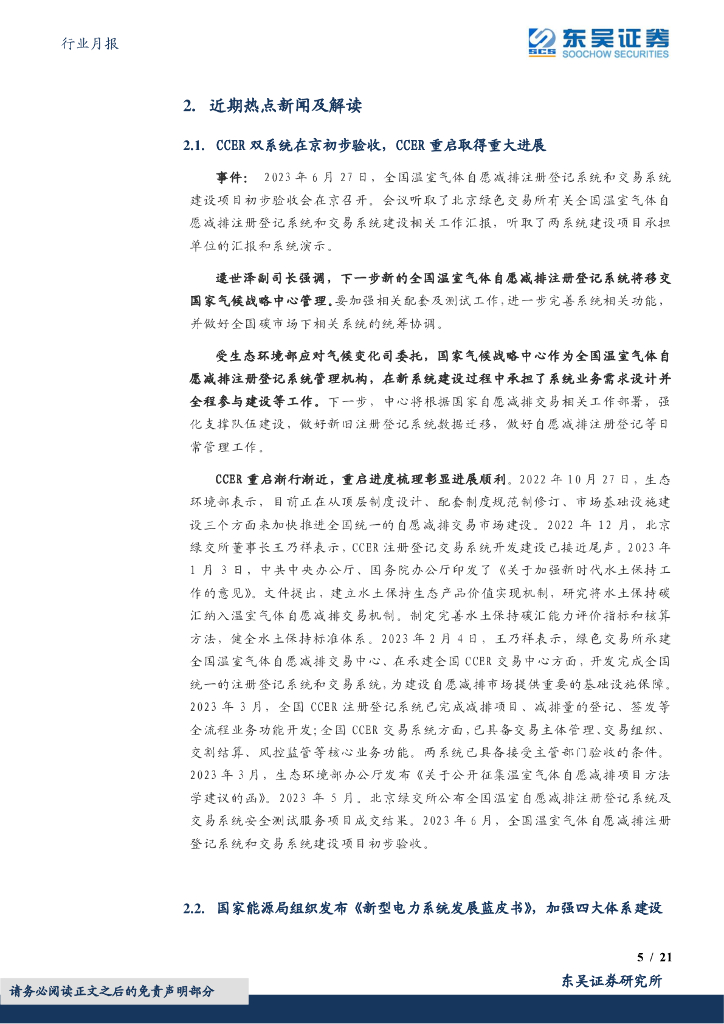 东吴证券:环保行业月报:CCER重启在即,生环部拟实施焦化行业和水泥行业的超低排放,关注清洁能源&碳价值长期增长.pdf