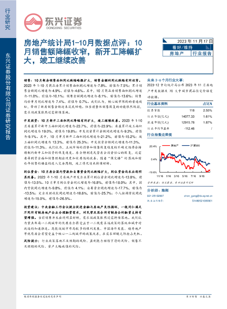 东兴证券:房地产统计局1-10月数据点评:10月销售额降幅收窄,新开工降幅扩大,竣工继续改善.pdf