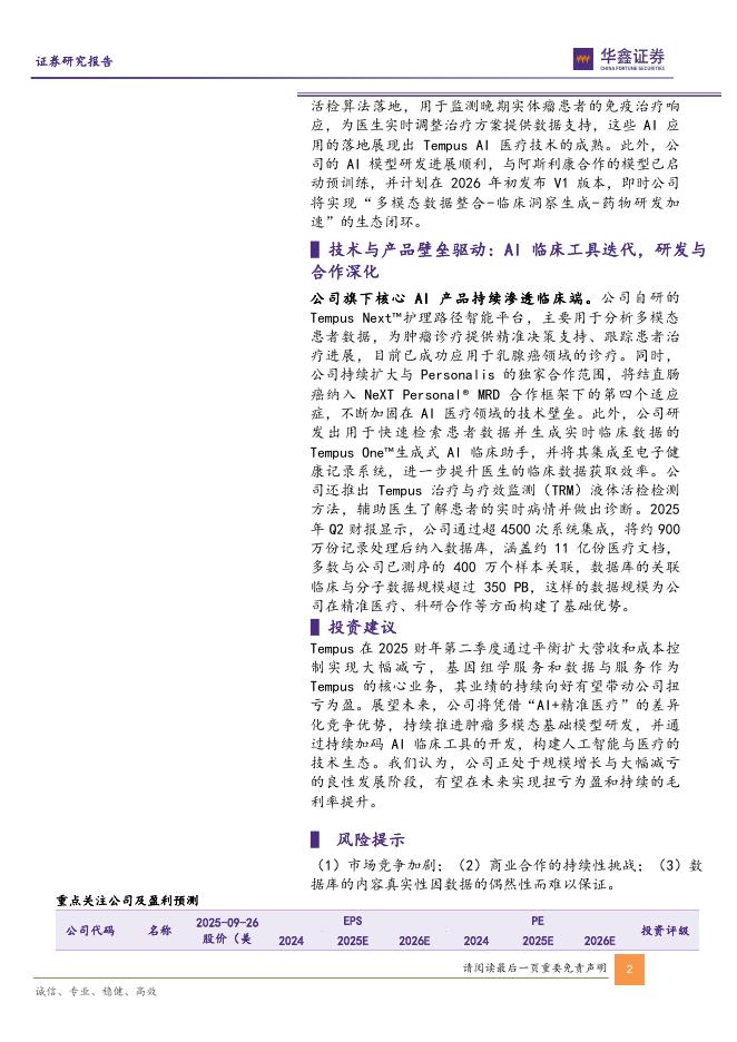 华鑫证券:计算机行业点评报告:Tempus:产品迭代驱动营收激增,AI赋能研发强化医疗技术壁垒.pdf