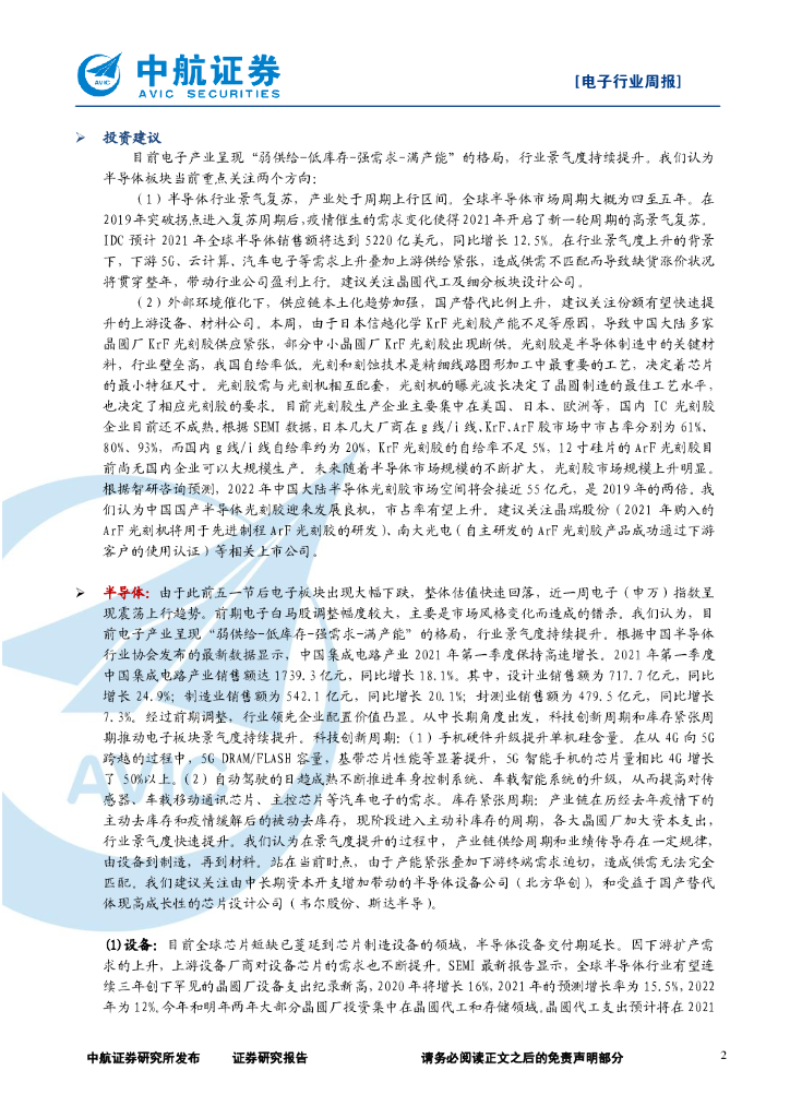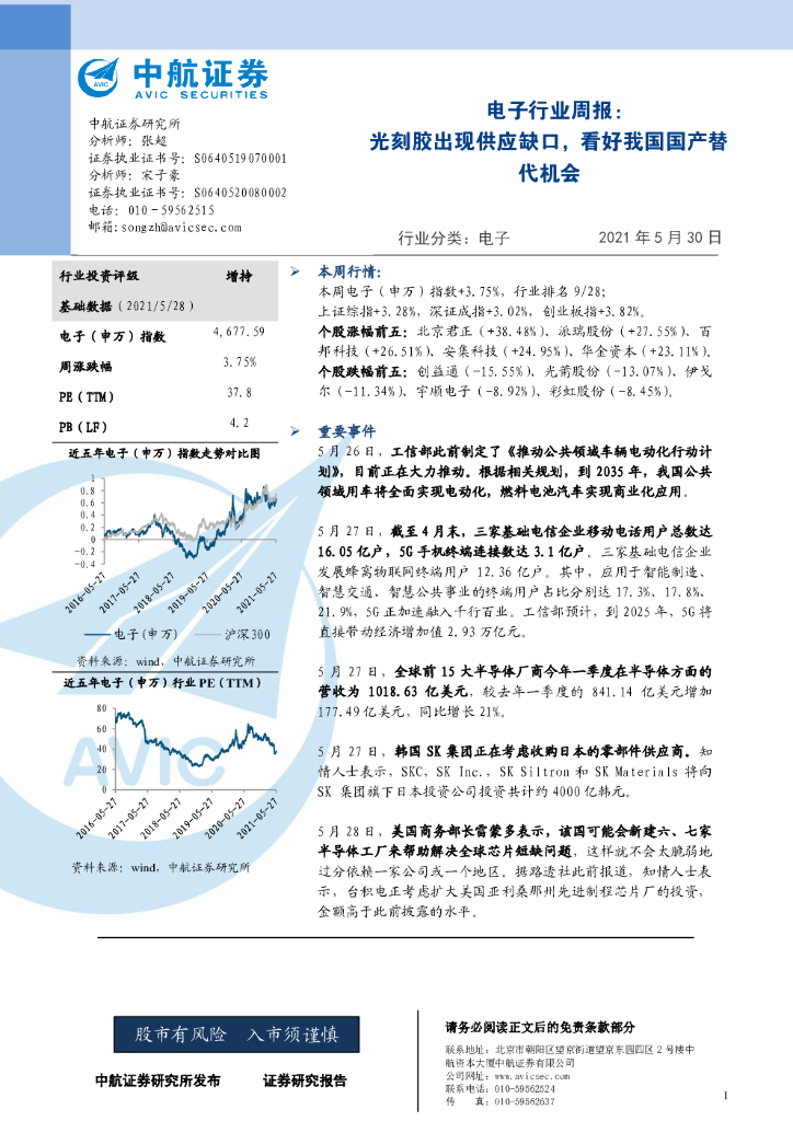 中航证券:电子行业周报:光刻胶出现供应缺口,看好我国国产替代机会.pdf