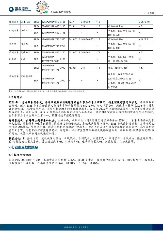 国金证券:汽车及汽车零部件行业周报:1月出海持续亮眼,新车有望催化车市需求释放.pdf