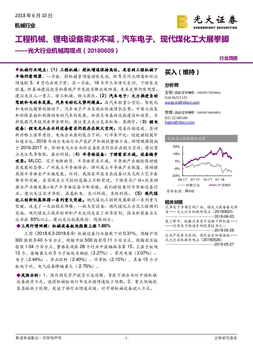 光大证券:光大行业机械周观点:工程机械、锂电设备需求不减,汽车电子、现代煤化工大展拳脚.pdf