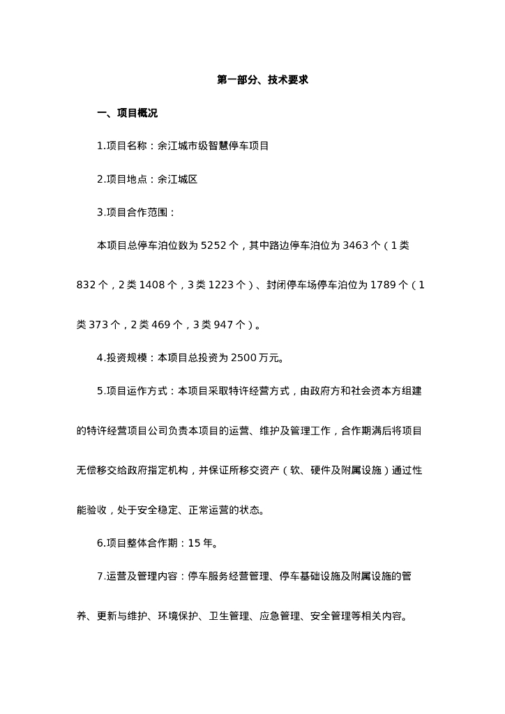 智慧停车-鹰潭市余江区智慧停车特许经营权项目服务需求招标文件.doc
