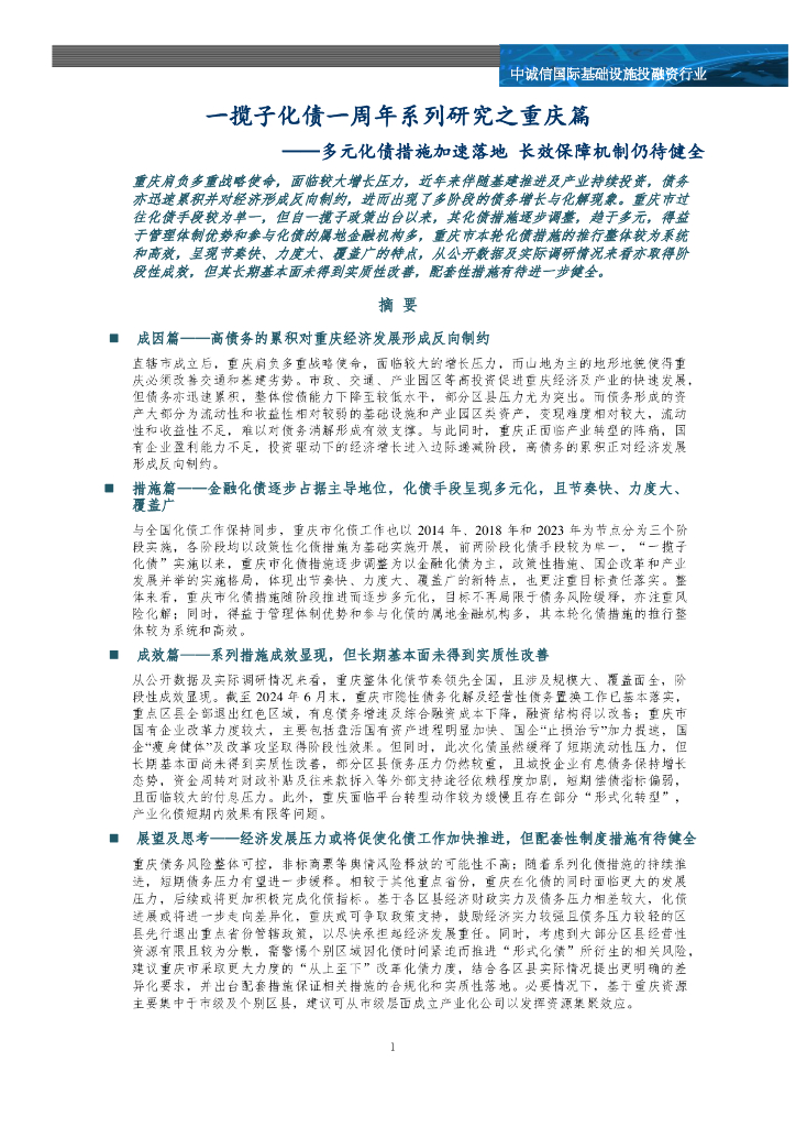 中诚信国际:一揽子化债一周年系列研究之重庆篇:多元化债措施加速落地 长效保障机制仍待健全.pdf