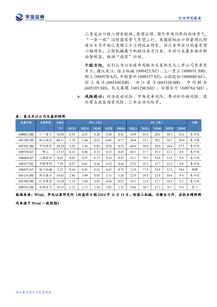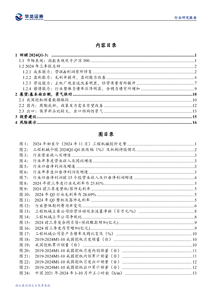 华龙证券:工程机械行业2024年三季报综述:三季度业绩改善明显,内外需共振助力行业景气延续.pdf