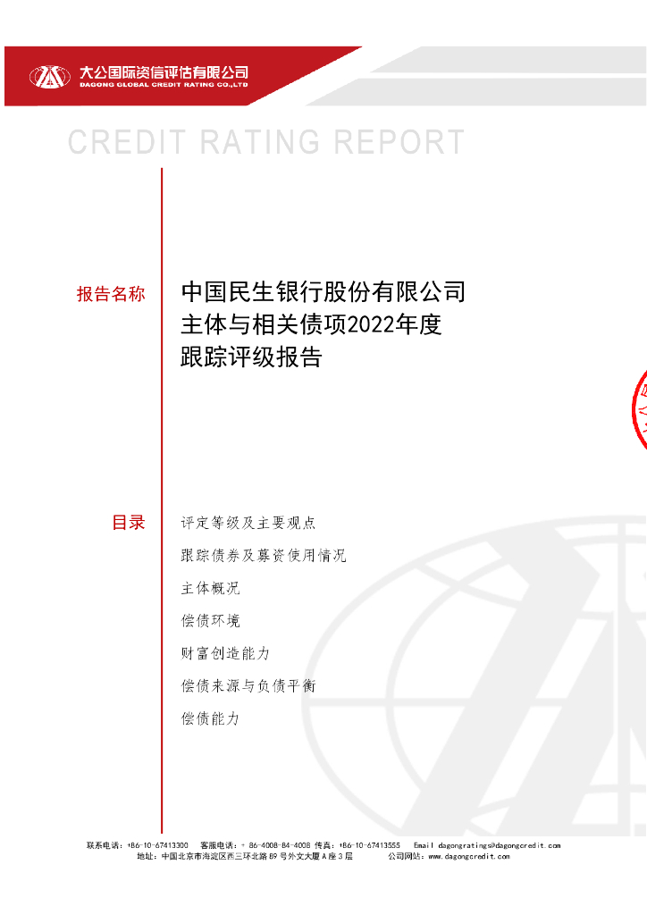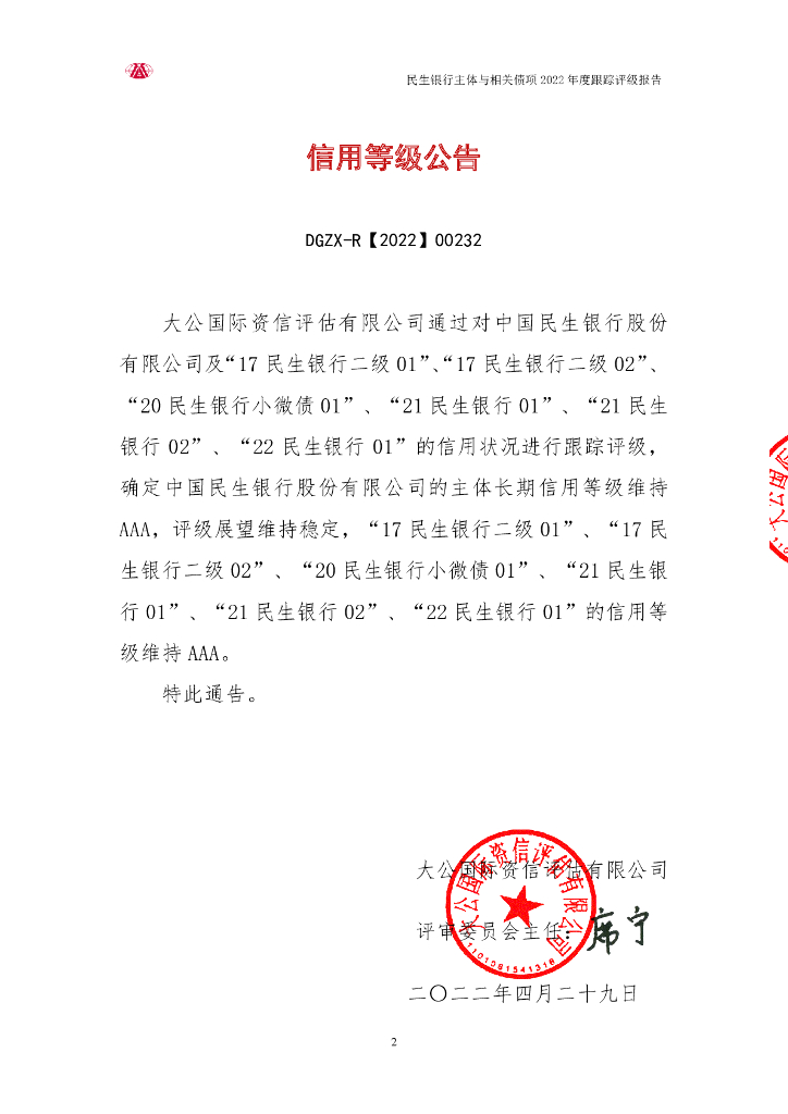 大公:中国民生银行股份有限公司主体与相关债项2022年度跟踪评级报告.pdf