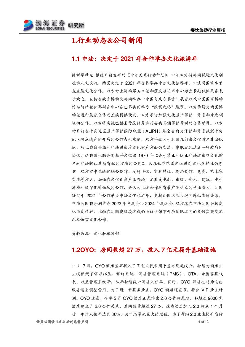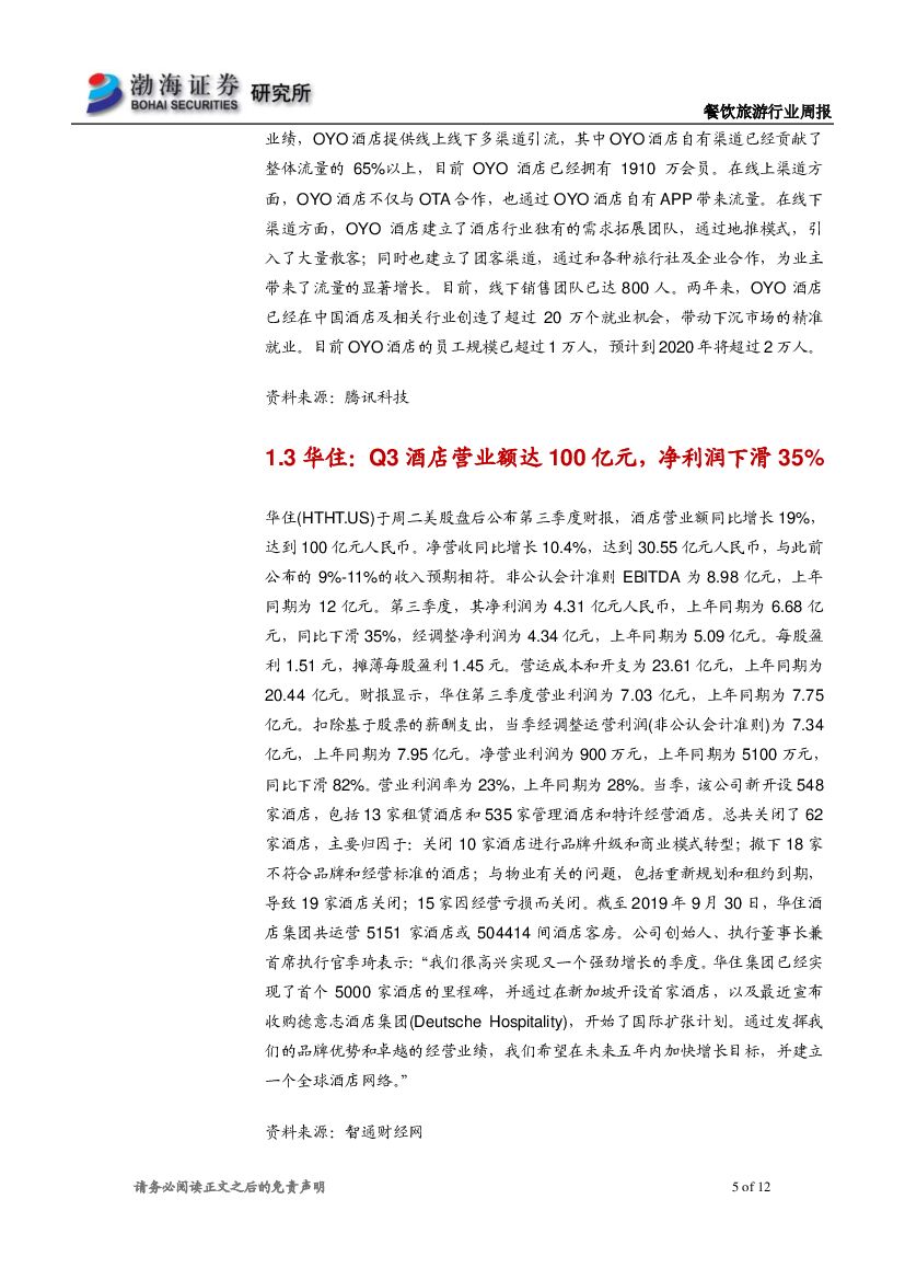 渤海证券:餐饮旅游行业周报:华住Q3营收100亿元 OYO房间数超27万间.pdf