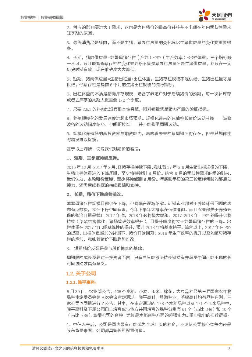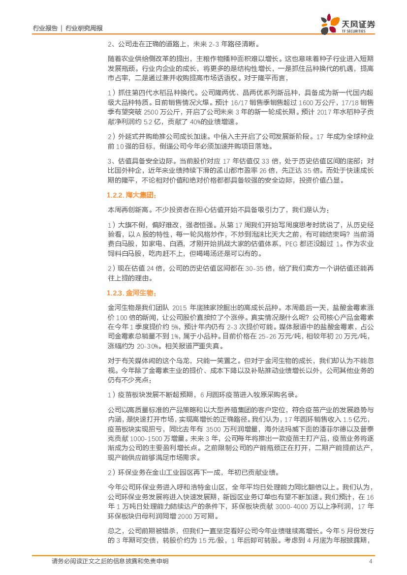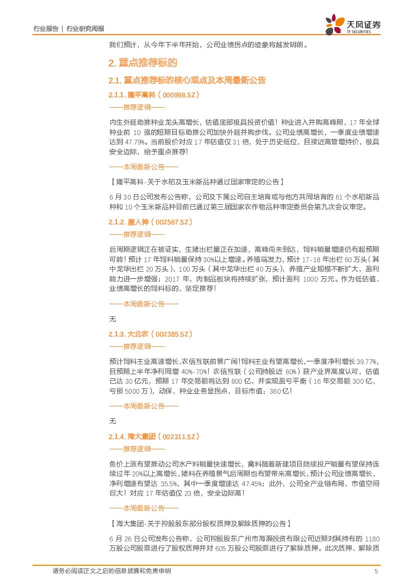 天风证券:农林牧渔2017年第27周周报:继续重点关注禽链超跌机遇;继续重点推荐板块优质白马龙头隆平高科、生物股份、大北农、海大集团。.pdf