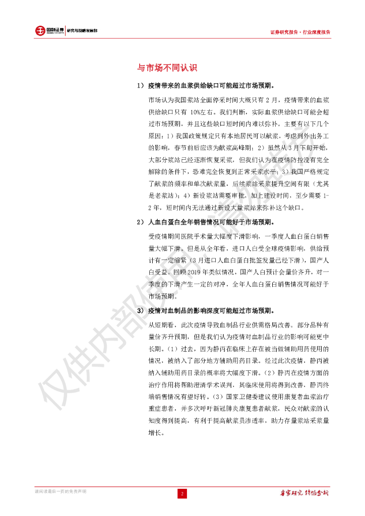 国融证券:血制品行业专题报告:关注疫情带来的血液制品配置价值.pdf