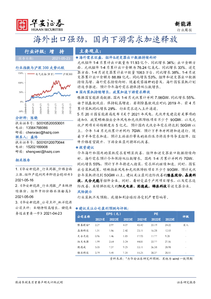 华安证券:电气设备行业周报:海外出口强劲,国内下游需求加速释放.pdf