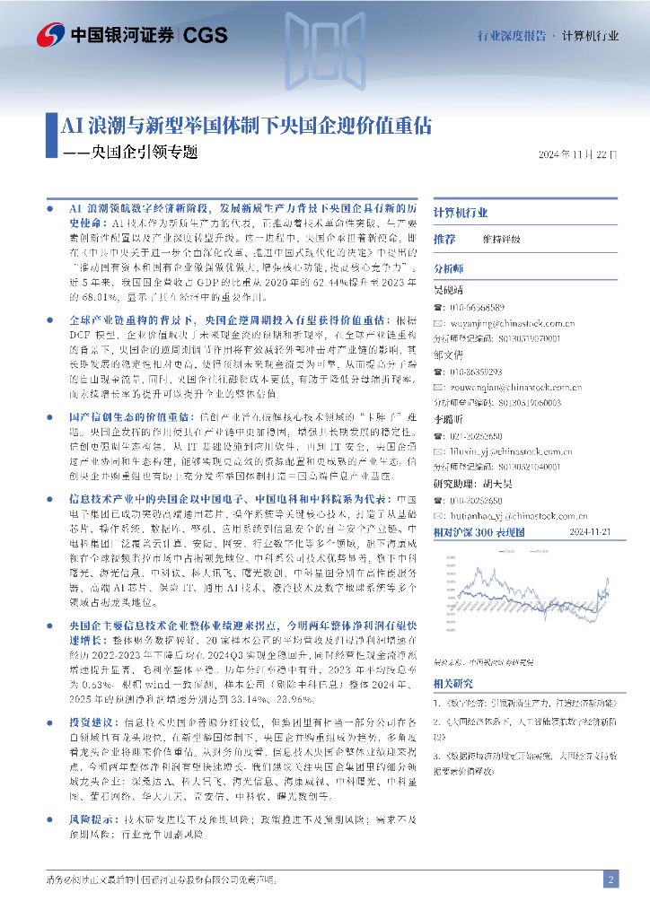 中国银河:计算机行业:央国企引领专题-AI浪潮与新型举国体制下央国企迎价值重估.pdf