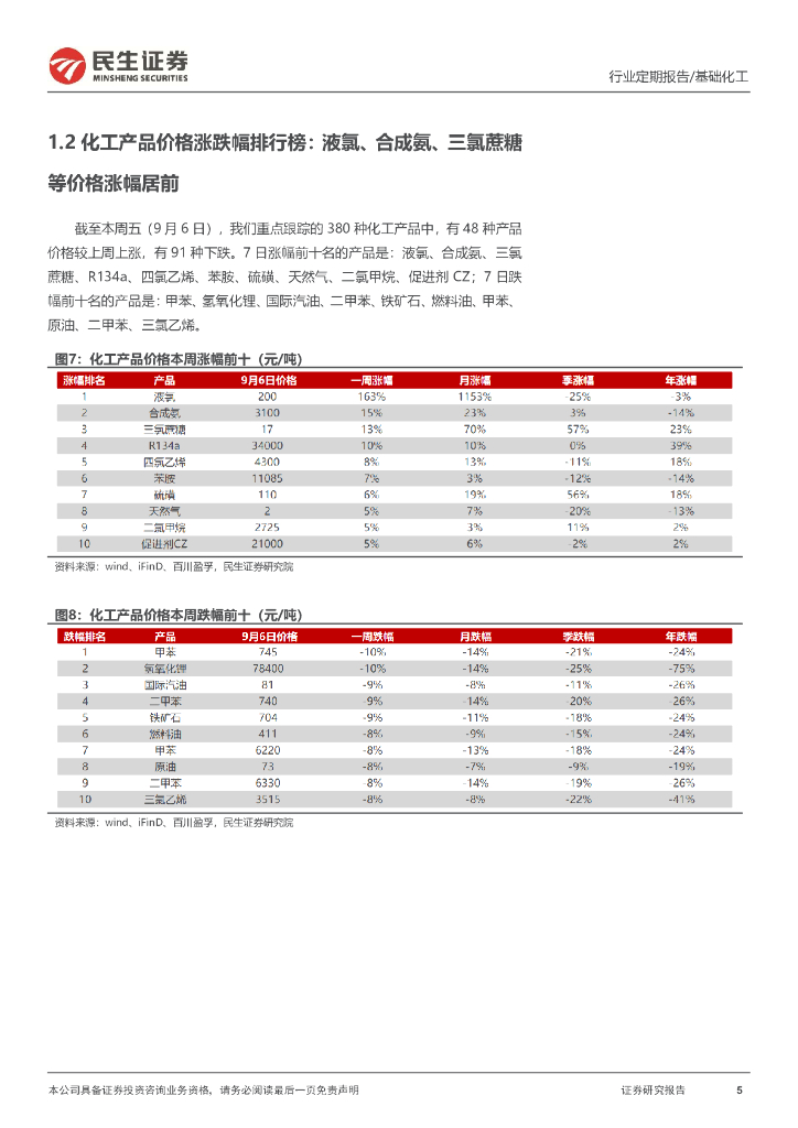民生证券:化工行业周报:三氯蔗糖价格继续上涨,两省公布“两高”目录.pdf