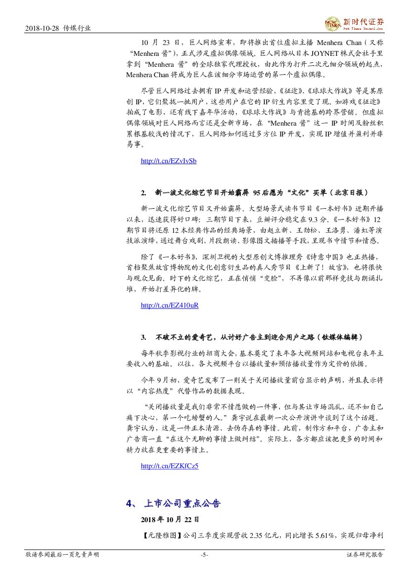 新时代证券:新时代传媒周报:政策面加持民企融资问题,关注基本面良好三季报资金面改善者.pdf