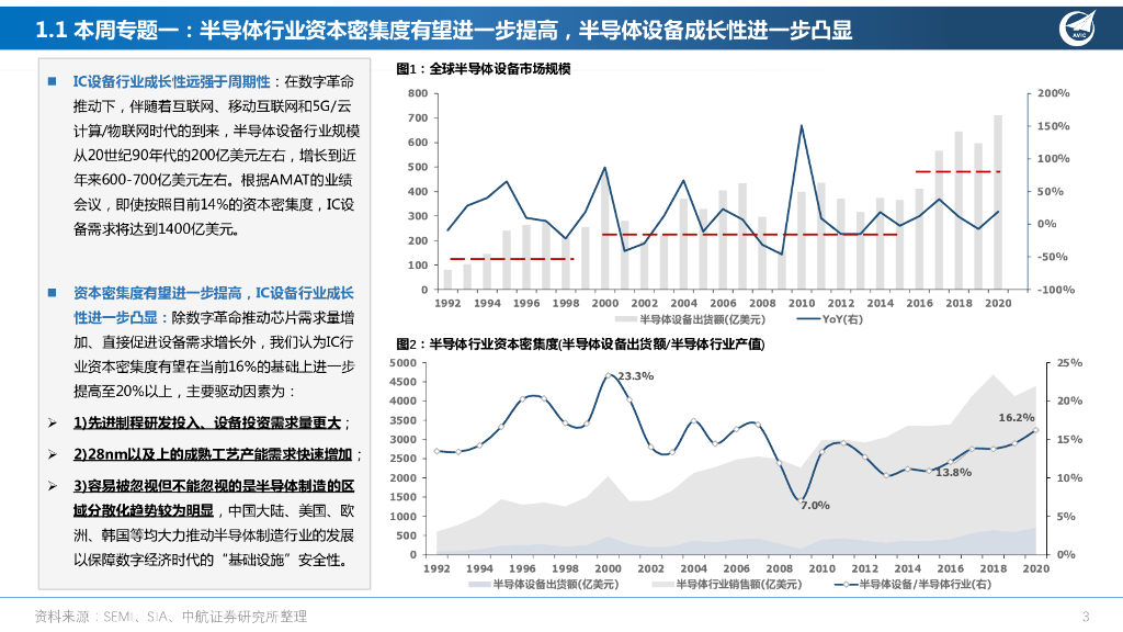 中航证券:高端制造行业周报:半导体产业资本密集度提高进一步凸显设备需求成长性,设备公司或迎盈利和估值的双重提升;电池厂快速扩产有望驱动锂电设备龙头订单超预期.pdf