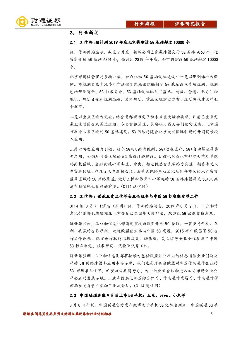 财通证券:通信行业周报:华为鸿蒙OS发布,国内5G高歌猛进.pdf