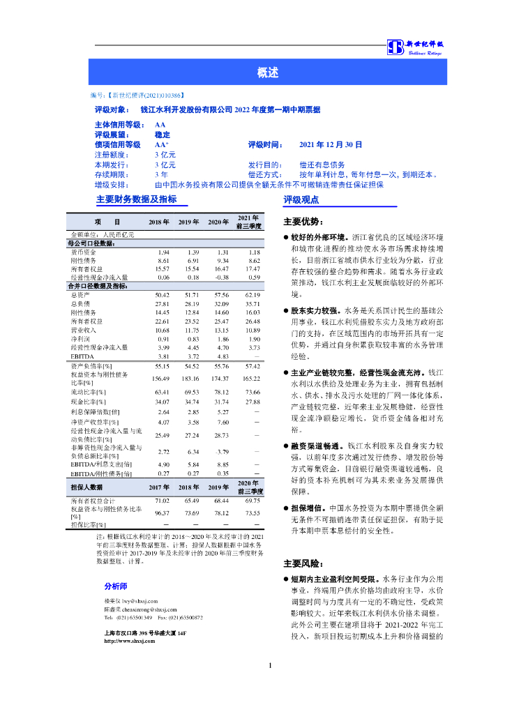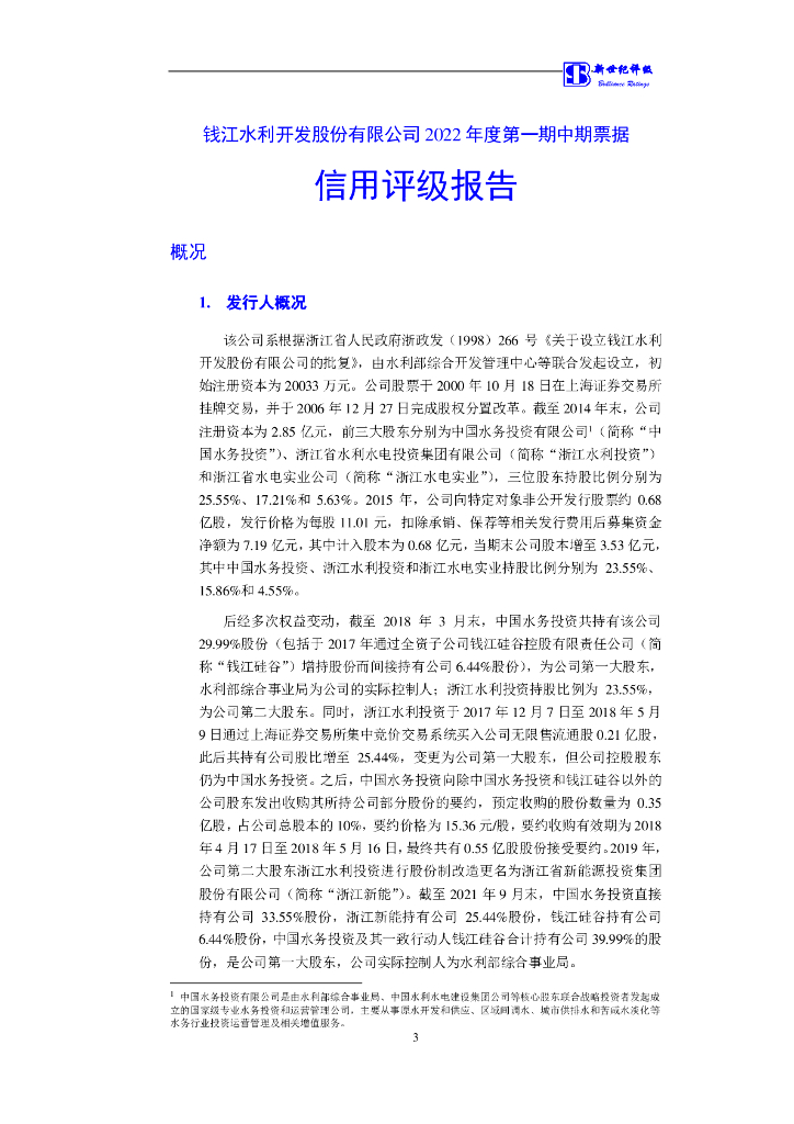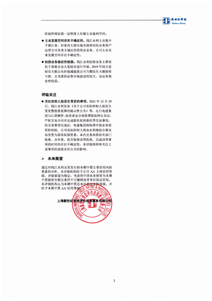 新世纪:钱江水利开发股份有限公司2022年度第一期中期票据信用评级报告.pdf