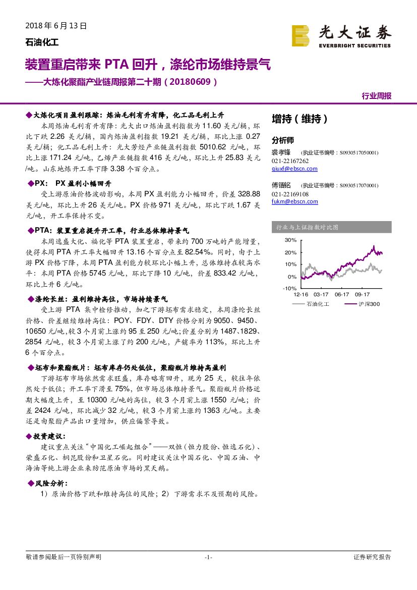 光大证券:大炼化聚酯产业链周报第二十期:装置重启带来PTA回升,涤纶市场维持景气.pdf
