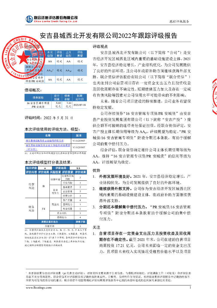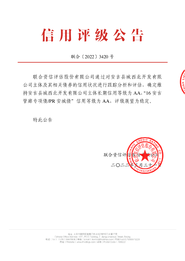 联合资信:安吉县城西北开发有限公司2022年跟踪评级报告.pdf