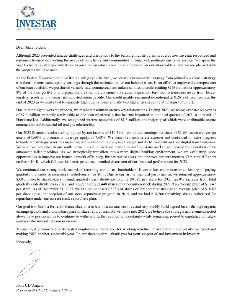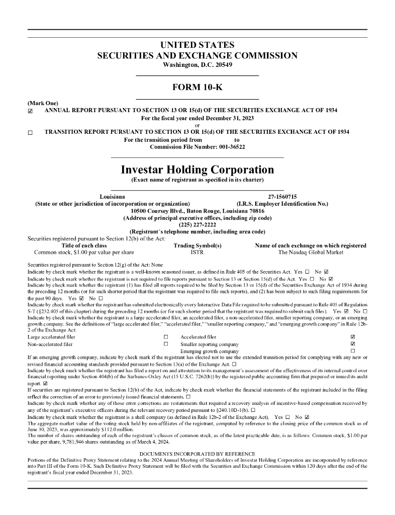 Investar Holding Corp(ISTR)2023财年年度报告(英文版).pdf