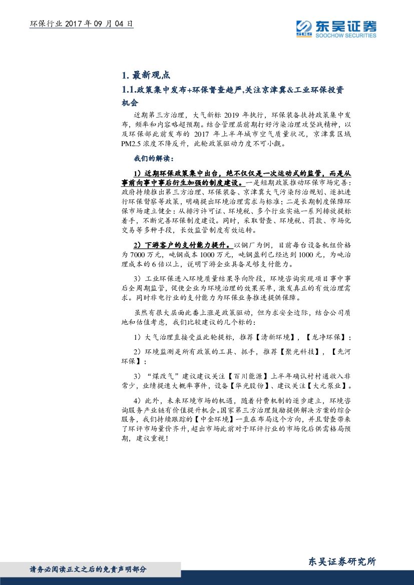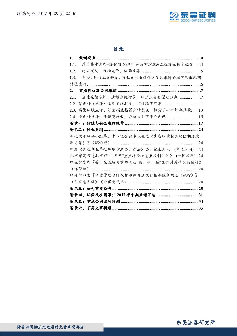 东吴证券:环保行业周报:深化改革领导小组第三十八次会议审议通过《生态环境损害赔偿制度改革方案》.pdf