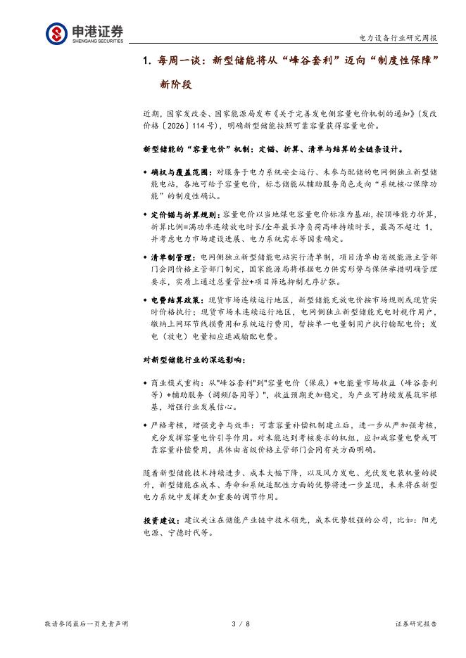 申港证券:电力设备行业研究周报:新型储能将从“峰谷套利”迈向“制度性保障”新阶段.pdf