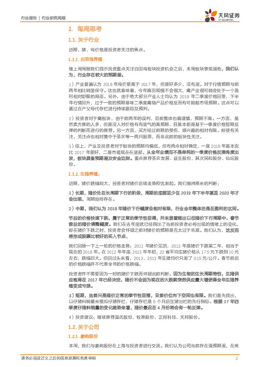 天风证券:农林牧渔2018年第9周周报:猪价企稳了吗?鸡价还能涨吗?.pdf
