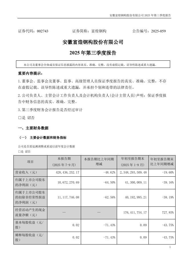 002743-富煌钢构:2025年三季度报告.pdf