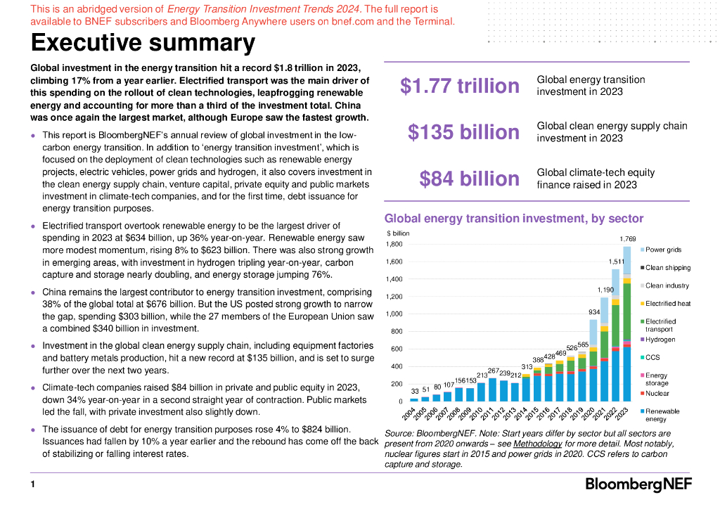 BloombergNEF:全球能源转型投资趋势报告2024(英文版).pdf