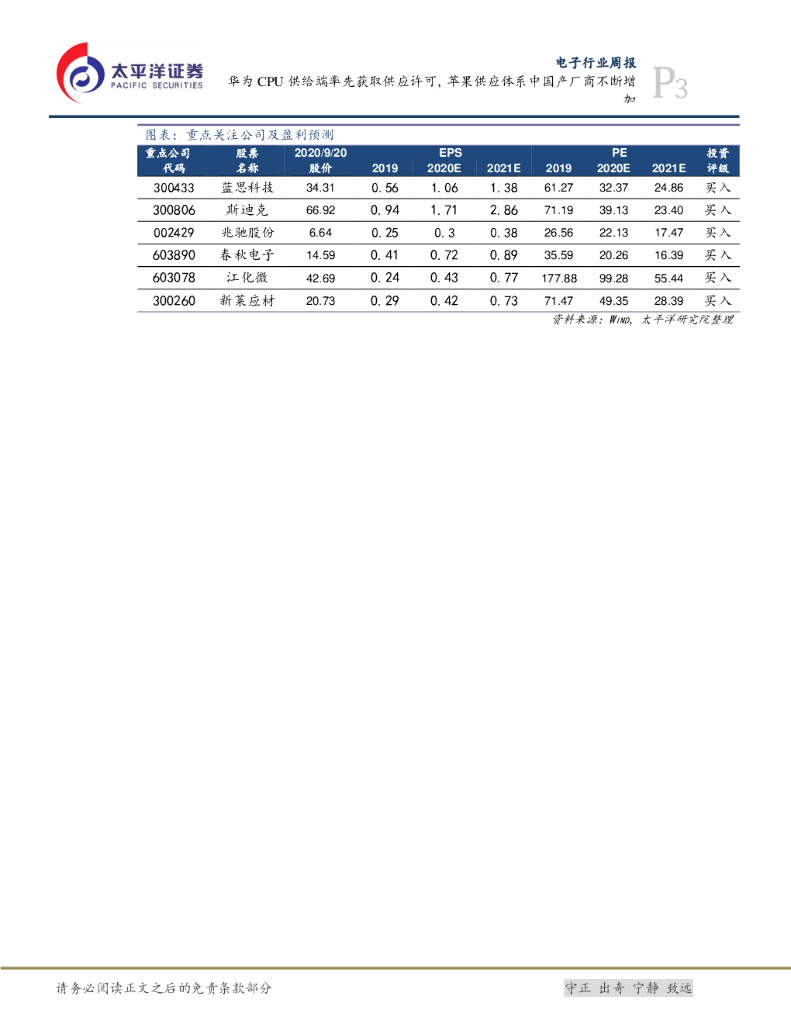 太平洋证券:电子设备、仪器和元件行业周报:华为CPU供给端率先获取供应许可,苹果供应链中系厂商继续扩增.pdf