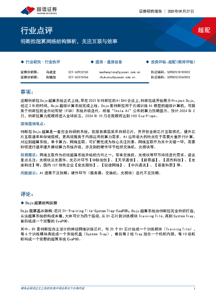 国信证券:通信行业点评:特斯拉超算网络结构解析,关注互联与效率.pdf