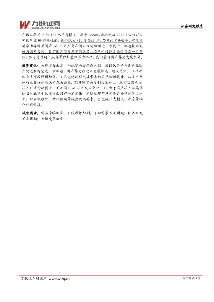 万联证券:电子行业快评报告:英伟达H20贸易受限,关注国产算力机遇.pdf