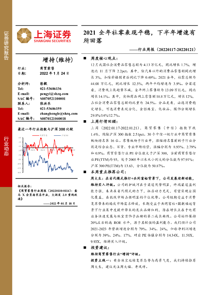 上海证券:商贸零售行业周报:2021全年社零表现平稳,下半年增速有所回落.pdf