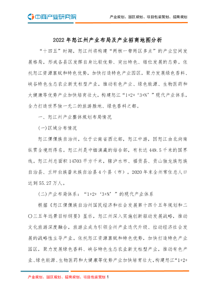 2022年怒江州产业布局及产业招商地图分析.pdf