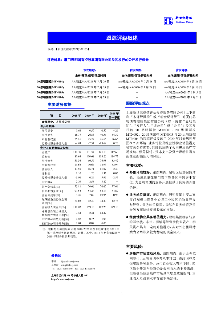 新世纪:厦门思明国有控股集团有限公司及其发行的公开发行债券跟踪评级报告.pdf