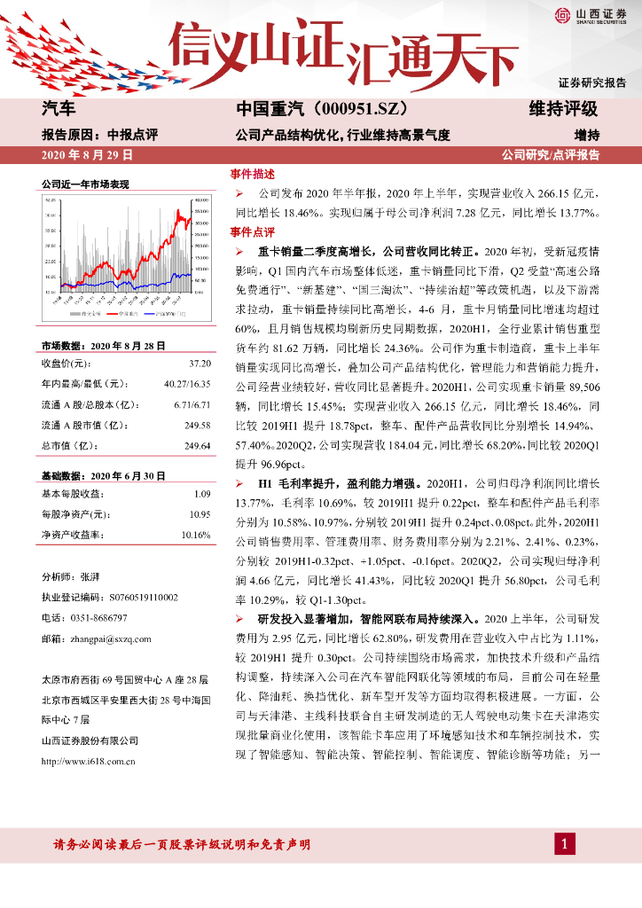 山西证券:中国重汽(000951)-公司产品结构优化,行业维持高景气度.pdf