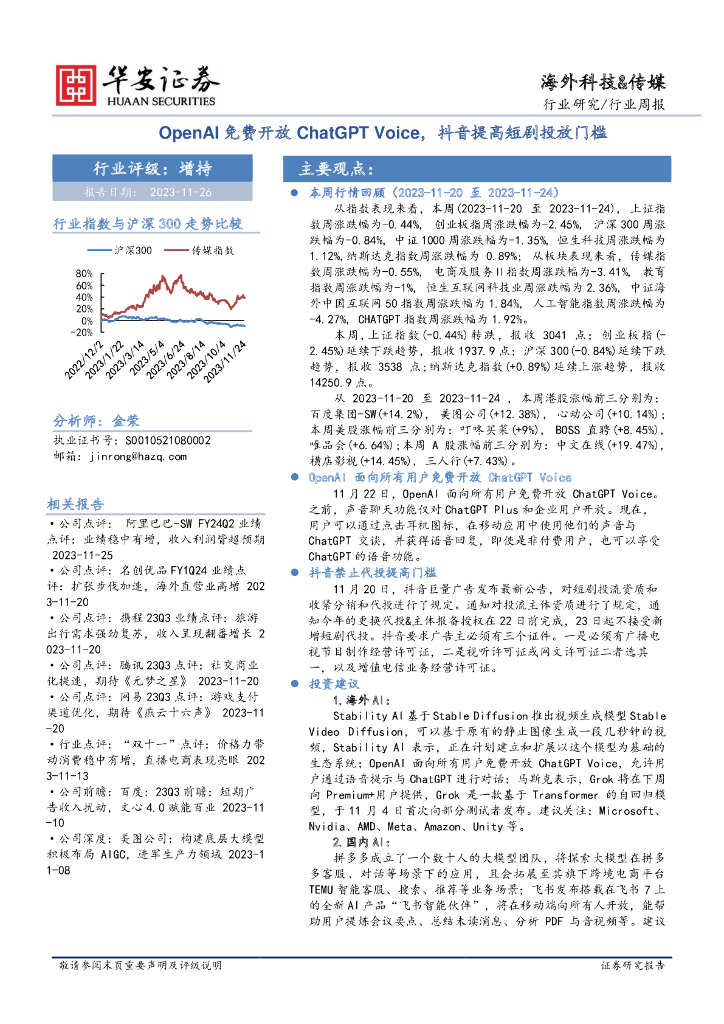 华安证券:海外科技&传媒行业周报:OpenAI免费开放ChatGPT Voice,抖音提高短剧投放门槛.pdf