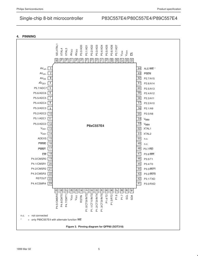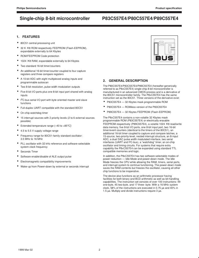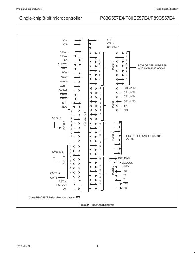 PHILIPS P83C557E4/P80C557E4/P89C557E4 Single-chip 8-bit microcontroller 数据手册.pdf