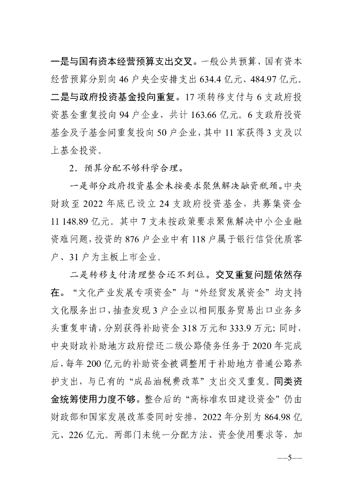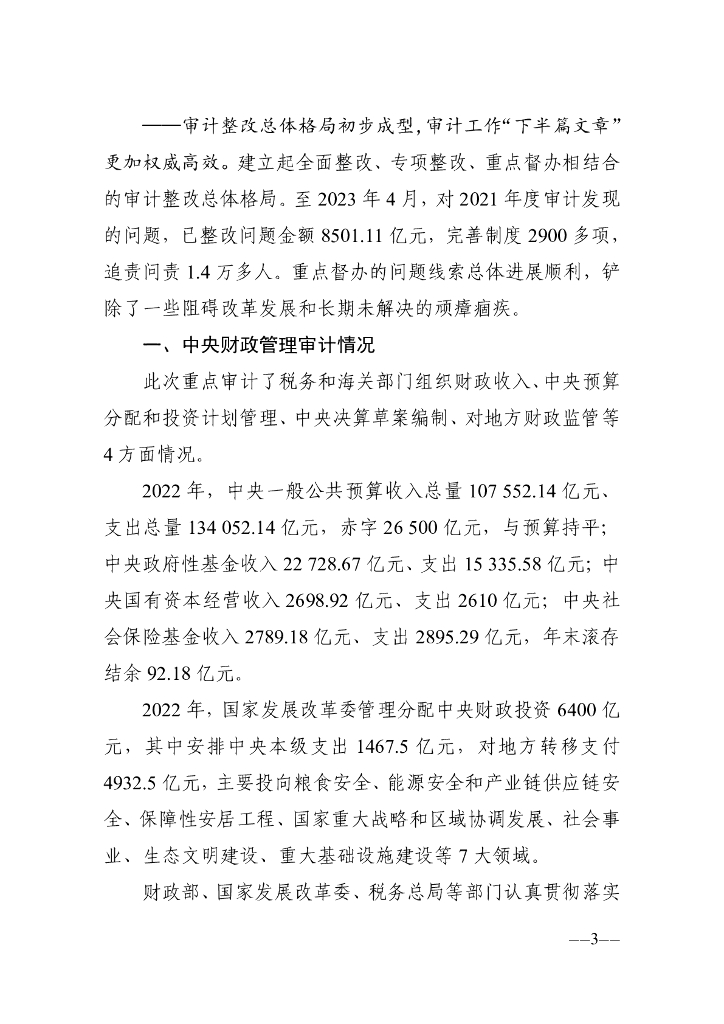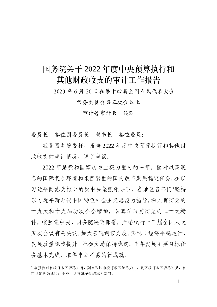 审计署:2022年度中央预算执行和其他财政收支的审计工作报告(2022年度审计报告).pdf