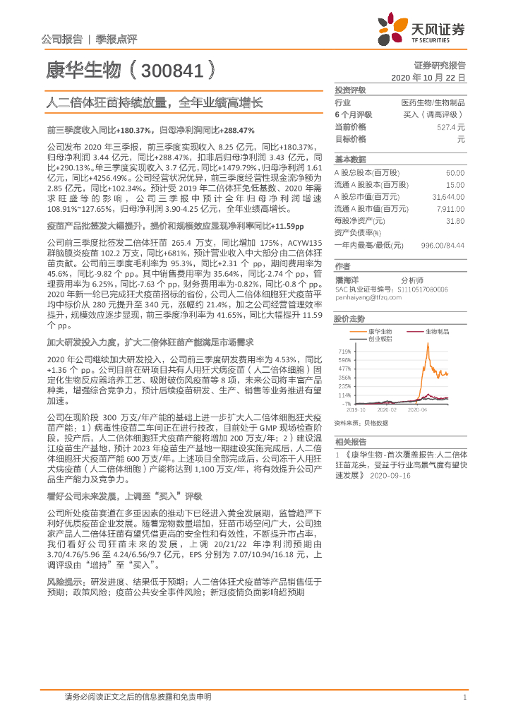 天风证券:康华生物(300841)-人二倍体狂苗持续放量,全年业绩高增长.pdf