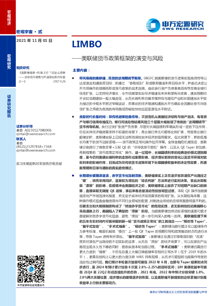 申万宏源:LIMBO——美联储货币政策框架的演变与风险.pdf
