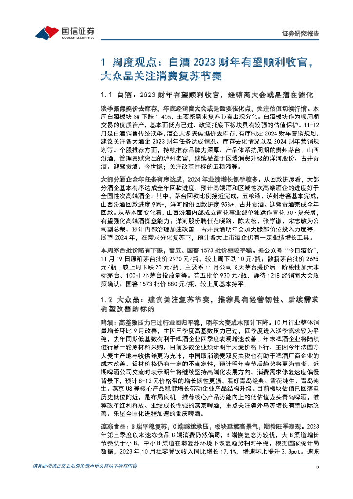 国信证券:食品饮料周报(23年第47周):白酒2023财年有望顺利收官,大众品关注消费复苏节奏.pdf
