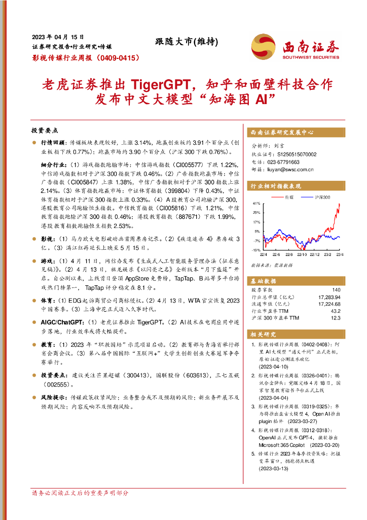 西南证券:影视传媒行业周报:老虎证券推出TigerGPT,知乎和面壁科技合作发布中文大模型“知海图AI”.pdf